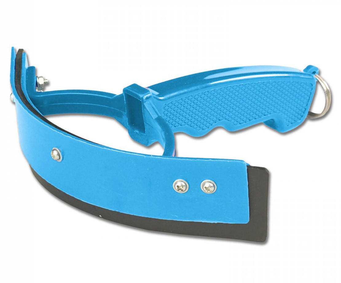 Plastová stěrka na stahování vody z koně po koupání. Stěrka je lehká a dobře se drží.
