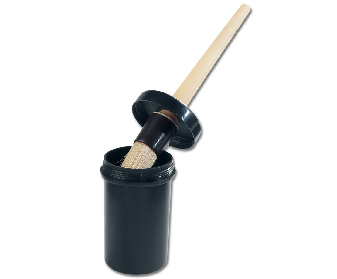 Štětec na kopyta z prasečích štětin s uzavíratelnou krabičkou pro udržení čistoty.