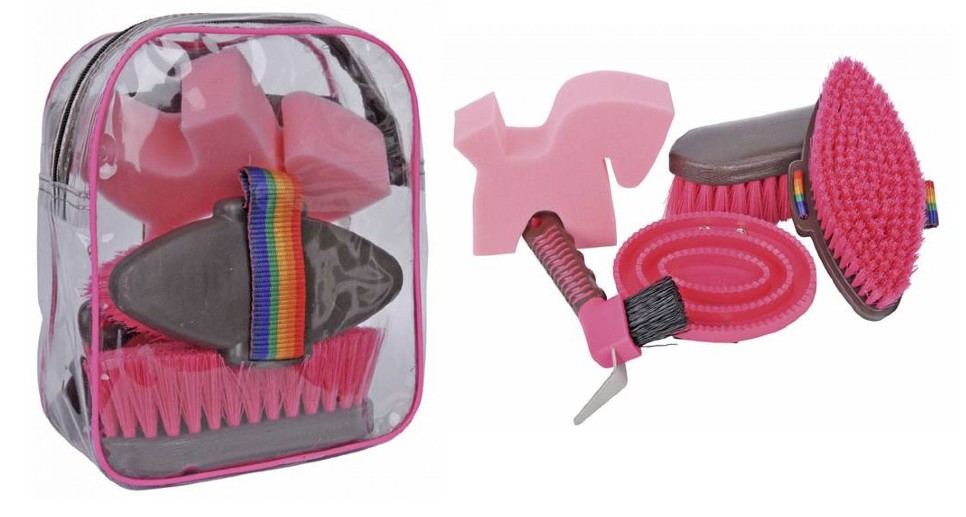 V čištění je kopytní háček, houbička, hřbílko a dva kartáče.