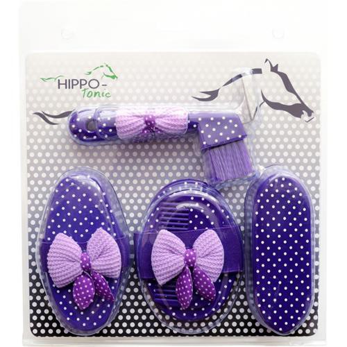 Sada obsahuje: háček na kopyta, hřebínek, rýžový kartáč, hřbílko, kartáč na čištění.