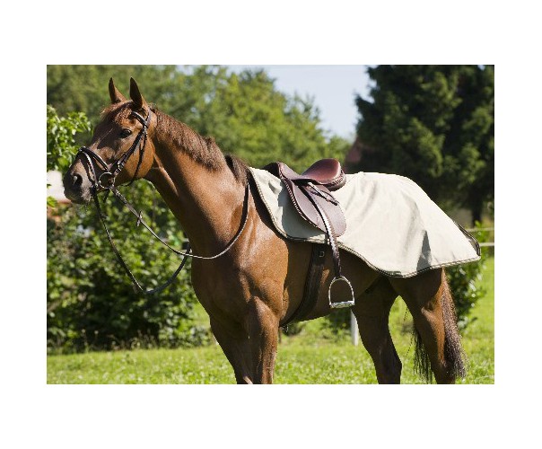 Bederka s vykrojením na sedlo z polyesteru 600D Ripstop, voděodolná, prodyšná se svařenými švy, výplň: polybavlna. Suchý zip na kohoutku a podocasním popruhu, krátce stavitelný přední díl pro lepší stehenní kontakt jezdce a proti odřeninám.