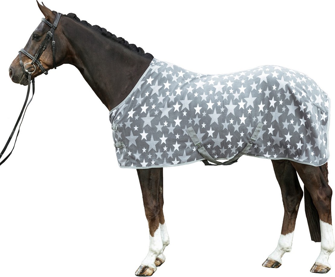 Odpocovací deka na koně vyrobená z hrubšího fleecu se dvěmi přezkami na prsou a zapínáním pod břichem. Deka je dobře střižená, díky záševkům dobře sedí na zádi a nedělá "střechu". Je vybavena šňůrkou pod ocasem, která pomáhá deku přidržet na správném místě, pokud deka zůstává na koni déle. Deka má odepínací kšíry pod břichem, deka se tak dá použít na koně po práci přehozením přes sedlo, aniž by z ní zapínání viselo. Na kohoutku je vypodložená. Po celém obvodu deku lemuje pevný šedý lem.