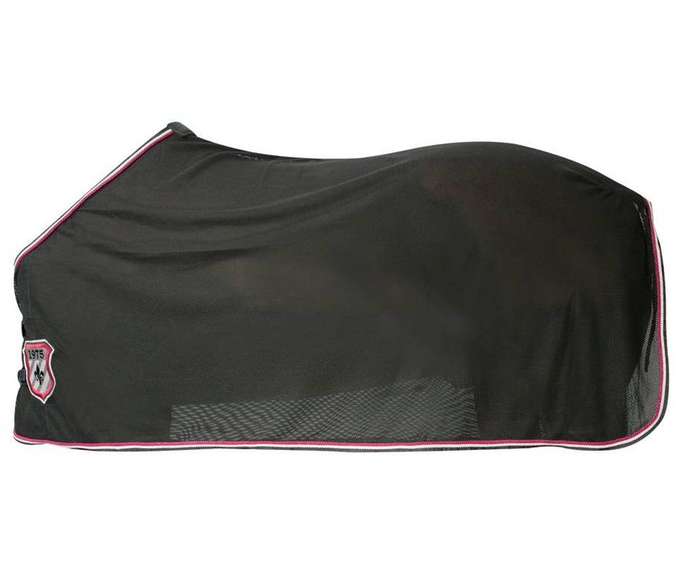 Módní deka proti hmyzu s vypodložením v oblasti kohoutku, dvojitým zapínáním v přední části a šňůrkou na upevnění deky pod ocasem. Deka je kontrastně lemovaná a ozdobena vyšitým logem.