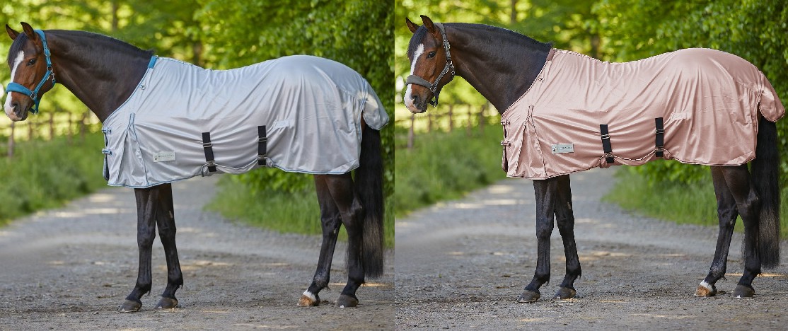 Kvalitní deka z jemné tkaniny s břišní a ocasní klapkou, která chrání před nepříjemným hmyzem. Dobré uchycení zajišťuje dvojitý přední uzávěr, klínek, ocasní šňůry a šňůry mezi nohami. Materiál: 100% polyester