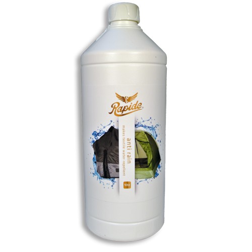 Rapide Anti Rain liquid je velmi kvalitní přípravek, který učiní materiály vodě odolnými. Chrání textilie z bavlny, plátna a směsných materiálů nejen proti vodě, ale i nečistotám a mastnotě. Je rychlý, snadno použitelný a velmi účinný. Je vhodný na kočárky, stany, perseniky, biminy, plachty, deštníky, slunečníky, markýzy, rolety, přikrývky na koně, atd.