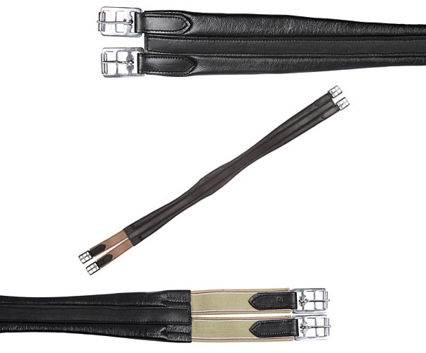 Kožený anatomický podbřišník s dotahovací gumou. Měkký polstrovaný kožený podbřišník s dotahovacími gumami a kováním ve stříbrné barvě.