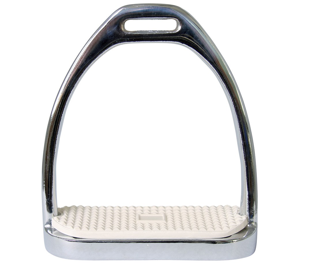 Kvalitní nerezové třmeny německé výroby s bílou nášlapnou gumou.