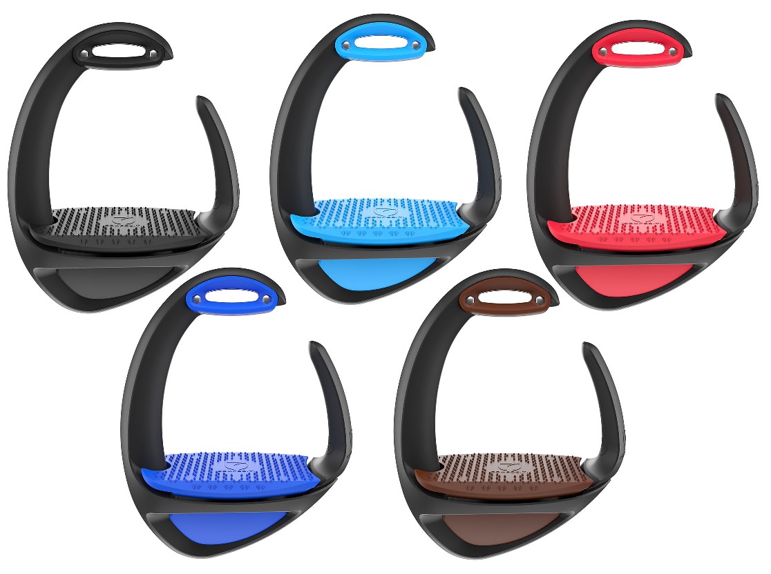 Bezpečnostní třmeny ve více barvách, vyrobeny v Belgii.