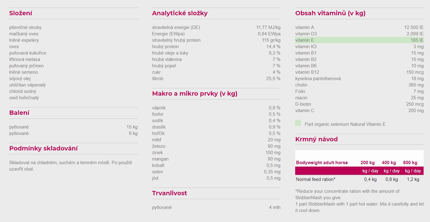 Pavo Slobber Mash je lehce stravitelné a extrémně vhodné pro koně, kteří mají problémy se zuby.
