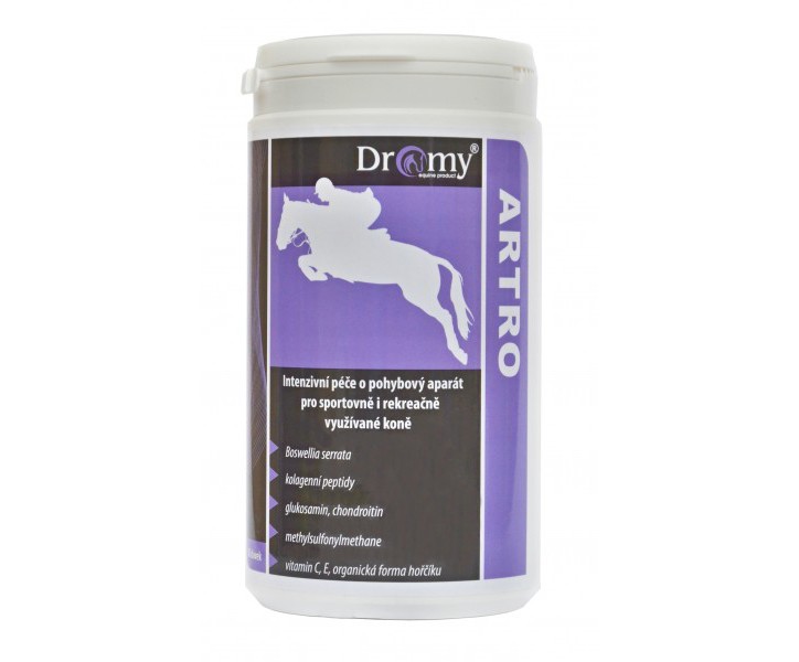 Od koně jsou požadovány v průběhu jeho života (růst, trénink a sportovní kariéra, ale i rekonvalescence) různé typy a změny pohybu, při kterých se extrémně zatěžuje jeho kostní, svalový, šlachový a kloubní aparát. Ani dobře trénovaný kůň nemusí dosáhnout svého nejlepšího možného výkonu. Příčinou může být vedle vrozených dispozic i onemocnění pohybového ústrojí. Protože artrotické problémy negativně ovlivňují úroveň výkonu, je péče o zdravé klouby koně důležitou součástí jeho ošetřování. Kosti koně jsou opěrnou strukturou těla, jedná se o pevnou a zároveň i tvrdou hmotu. Aby se předešlo destrukci kosti v důsledku velkého tření a nárazů, jsou povrchy kloubních hlavic a kloubních jamek potaženy hmotou - chrupavkou. Při stlačování chrupavky pohybem se dutiny zmenšují, tekutina klade při stlačování odpor. Chrupavku tvoří vlákno, jehož hlavní složkou je glukosamin. Na vlákno jsou připojeny štětiny tvořené osovým proteinem a na každou z nich jsou připojena vlákna tvořená chondroitinem. Vlákna chondroitinu jsou do sebe zaklesnuty tak, že vytváří malé dutinky vyplněné kloubní tekutinou. S přibývajícím věkem nebo při nadměrné zátěži se vlákna chondroitinu zkracují a řídnou. Důsledkem je zvětšení dutin, proto se chrupavka musí více stlačit, než je započat účinný tlumící proces. Bolestivost kloubu se objeví v okamžiku, kdy se z jakýchkoli důvodů zhorší tlumící a kluzné vlastnosti chrupavky. Nedostatečný přísun stavebních látek pro regeneraci chrupavky a také její vysychání, vedou k postupnému obrušování a ztenčování chrupavčité vrstvy. Následné poškození chrupavky, tak omezuje funkci kloubu. Objevují se bolesti, které se stupňují a může dojít k druhotnému poškození okolních tkání (otok kloubu, zvýšená místní teplota, zmnožení tekutin v kloubu). Snahou majitelů koní je zregenerovat chrupavku tak, aby se vlákna chondroitinu prodloužila a také zhoustla. Toho lze dosáhnout přísunem složek, které se na tvorbě chrupavky podílí. Je vhodné zařadit krmný doplněk s vysokým obsahem kolagenních peptidů, glykosaminoglykanů a účinných antioxidantů, které se podílejí na regeneraci pojivové tkáně a kloubních chrupavek, což vede ke zlepšení mechanicko - elastických vlastností. Zařazení extraktu Boswellie serraty pozitivně ovlivňuje zánětlivé procesy, zvyšuje pohyblivost především nosných kloubů.