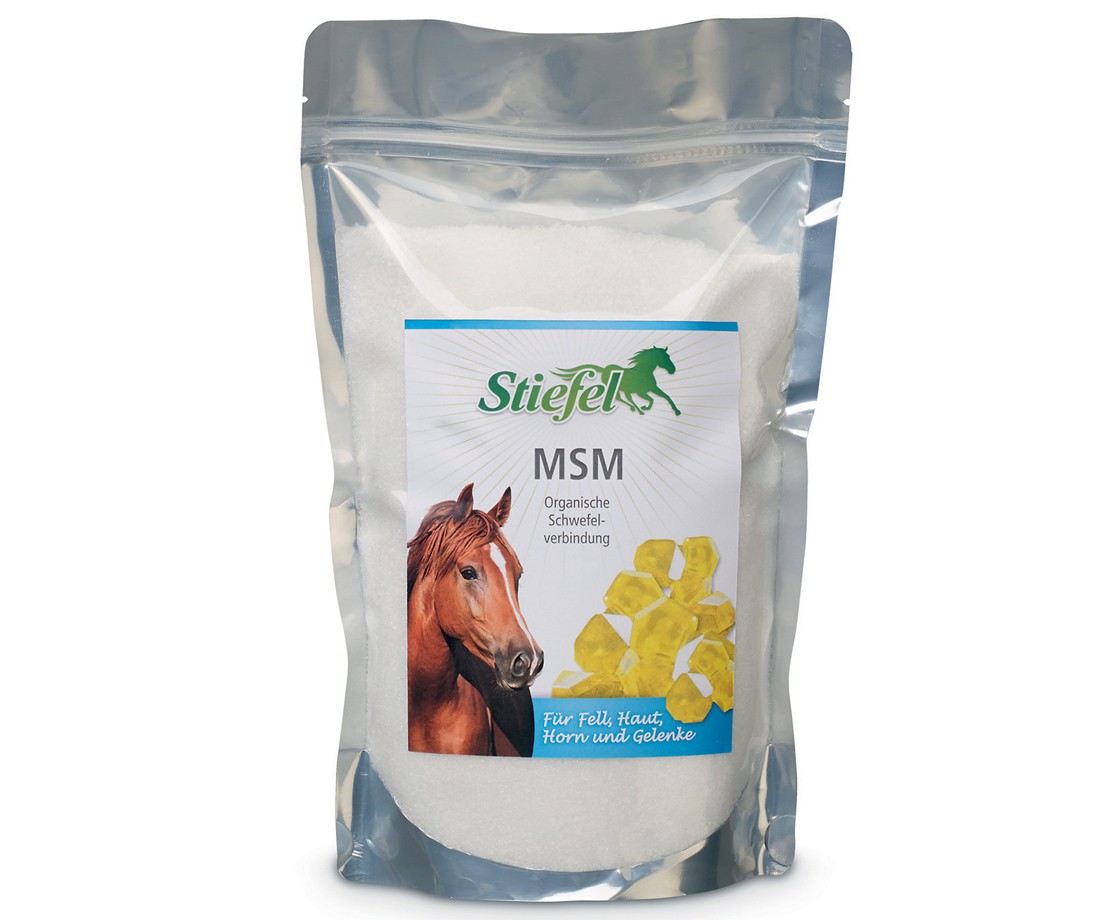 MSM je protizánětlivý přípravek, který se přidává do krmiva. Zvyšuje vitalitu a potlačuje pocit únavy, velmi účinně zbavuje tělo škodlivých látek, nevykazuje žádné vedlejší účinky a je zcela netoxický. Podílí se na rychlejším zotavení po úrazech a zraněních, pomáhá odstaňovat bolesti svalů a šlach. Má schopnost mírnit alergické reakce organizmu, podporuje zabudování glukosamin sulfátu a chondroitin sulfátu do struktur kloubů, je jedním ze základních kamenů ochrany organizmu před negativními účinky volných radiálů. Blokuje buněčné receptory histaminu, který je do značné míry zodpovědný za alergickou reakci, podílí se na eliminaci probíhajícího zánětu v kloubu a na výrazném omezení bolestivosti všeobecně. Má pozitivní vliv na artrózu, artritidu,laminitis a myalgie.