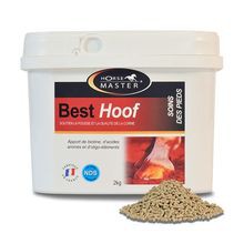 BEST HOOF je kompletní doplněk poskytující aminokyseliny (lysin, methionin), stopové prvky (zinek, měď) a d-biotin. BEST HOOF se doporučuje především na pomoc koním s poškozenými kopyty (následky laminitidy apod.).