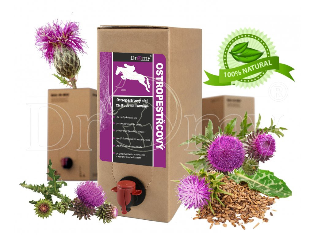 Za studena lisovaný Ostropestřcový olej pro všechny kategorie koní, psů a koček,