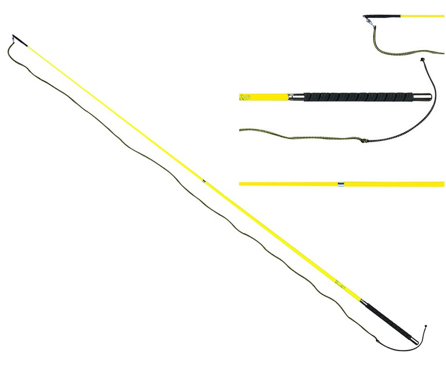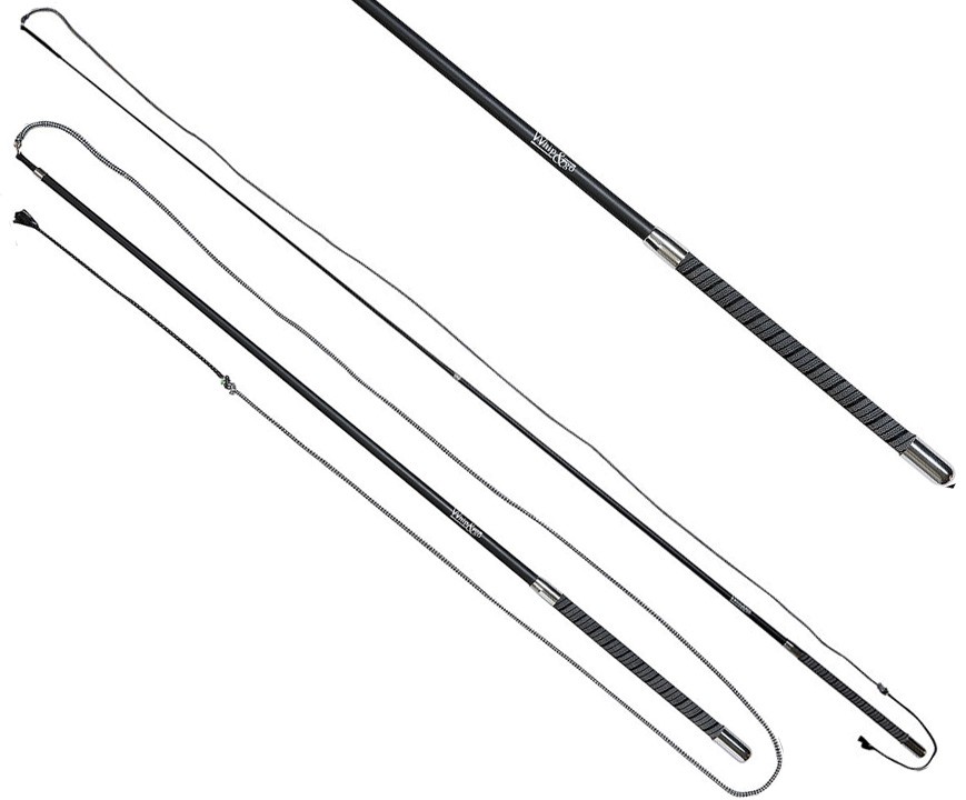Velmi lehký bič s flexibilním dutým jádrem. Vyroben z kompositních vláken a karbonu. Dlouhá pogumovaná protiskluzová rukojeť s kovovou hlavicí.