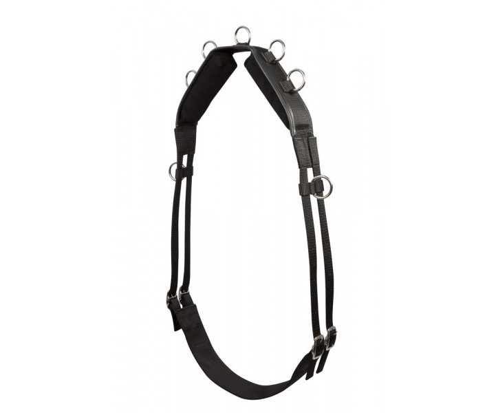 Lonžovací polstrovaný obřišník s kroužky, nastavitelný. Ideální umístění kroužků na obřišníku umožňuje přesné zapnutí pomocných otěží, vyvazovaček, chambonu nebo lonžovacího postroje.