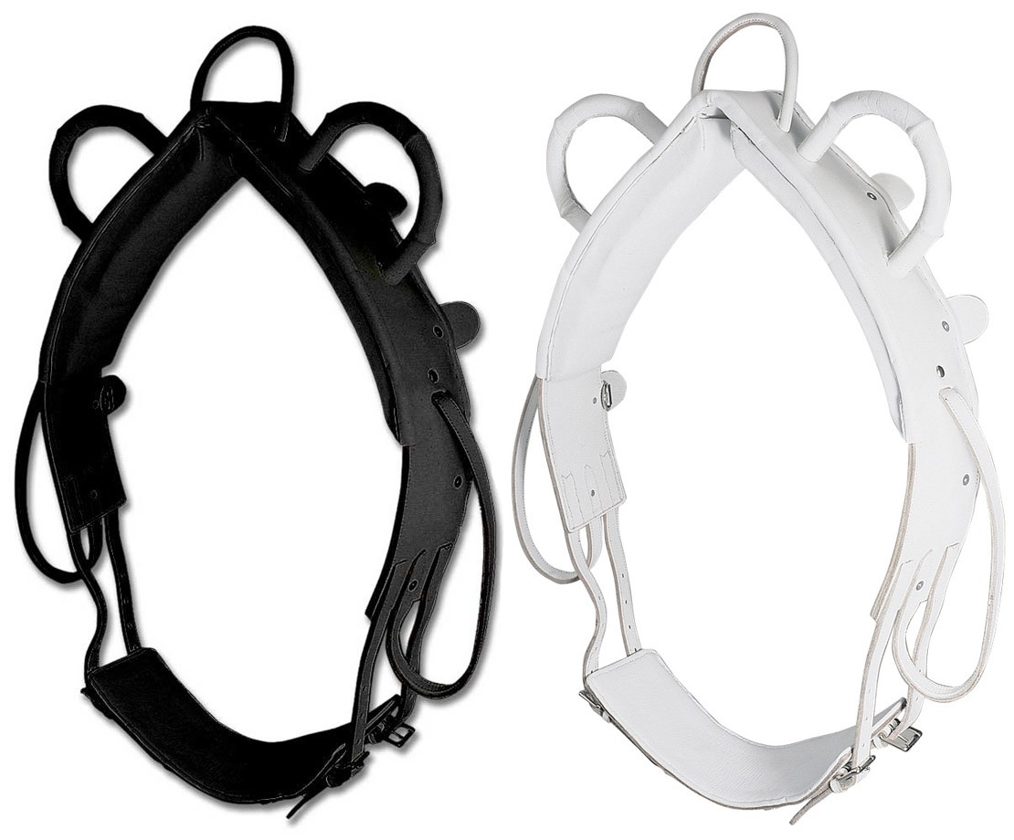 Velké voltižní bílé madla v kvalitním provedení, ideální i na závody. Madla Wembley jsou vyrobené z kvalitní buvolí kůže. Mají 14 cm široké dvě pevné kulaté madla, 11,5 cm vysoké, 13,5 cm široké, jedno madlo z jemné kůže uprostřed. V přední části je 5 kovových kroužků krytých kůží na uchycení otěži. Měkčený a podšitý břišní díl s dvojitými přezkami na obou stranách. Mají oboustranně nastavitelnou velikost.
