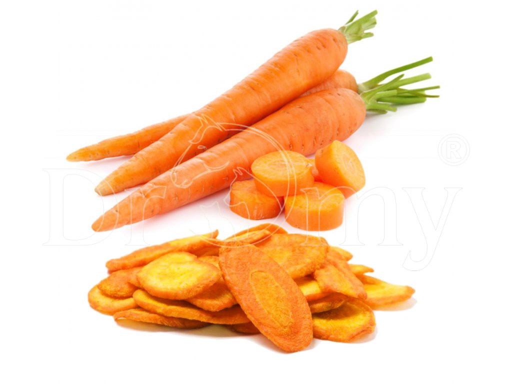 Jeden kilogram mrkvových chipsů = 10 kilogramů čerstvé mrkve.