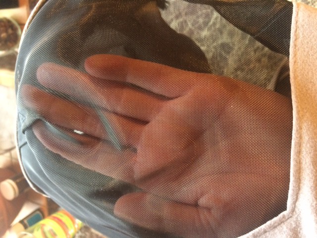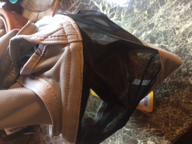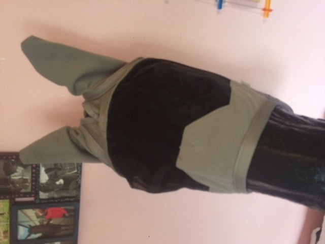 - v oblasti uší šedá hustá mash síťovina, otvor pro kštici
