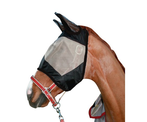 Odolná maska proti hmyzu nově také pro shetty a malé poníky, vyrobená ze speciálního materiálu odolávájícího roztržení. Okraje masky jsou podloženy fleecem, tím zabraňují odření kůže. V oblasti uší je našitá polyesterová tkanina, která umožňuje pohyb uší. Nosní část je vyztužená. Zapínání je na suchý zip pod hrdlem. Barva šedočerná.