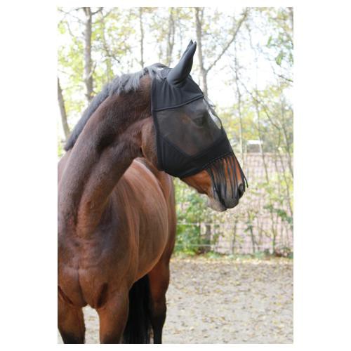 Maska proti hmyzu s ušima a třásněmi. Barva černá.
