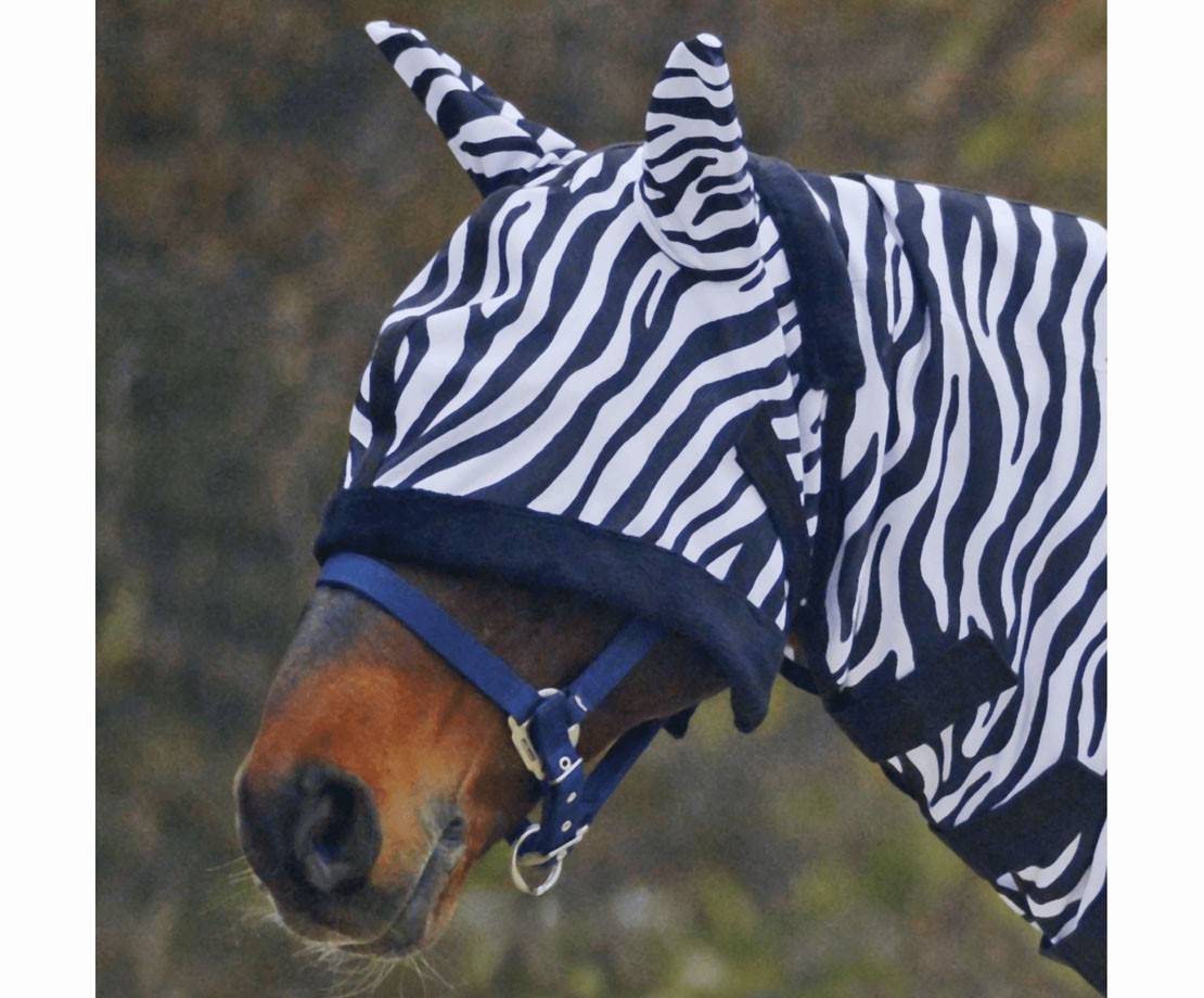 Maska k ochraně očí a uší před dotěrným hmyzem a muchničkami. Doporučujeme používat u koní s letní vyrážkou, kteří mají citlivé okraje uší, které bývají muchničkami rozkousány a poté poníkem rozškrábány až do krve. Při používání masky nedochází k dráždění kůže a poník pak nemá na uších olysalá místa. Maska se zapíná na suchý zip, spodí i horní část je podložená měkkým beránkem, na horním díle je poutko pro připevnění k dece.