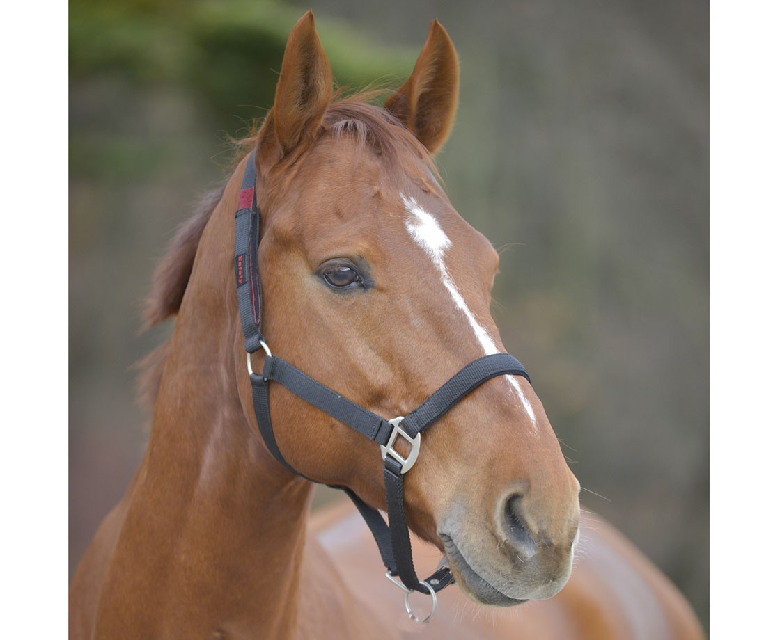 Nylonová ohlávka s integrovaným bezpečnostním suchým zipem na nastavitelném popruhu. Ideální pro použití na výběhu nebo pastvy - není třeba se starat o zachycení koně za ohlávku.