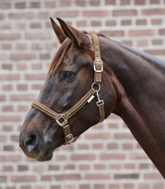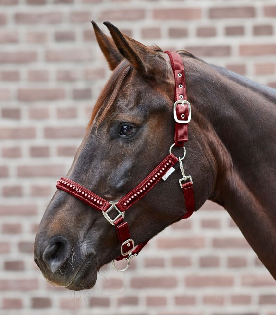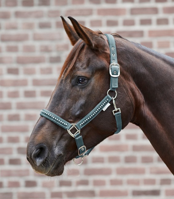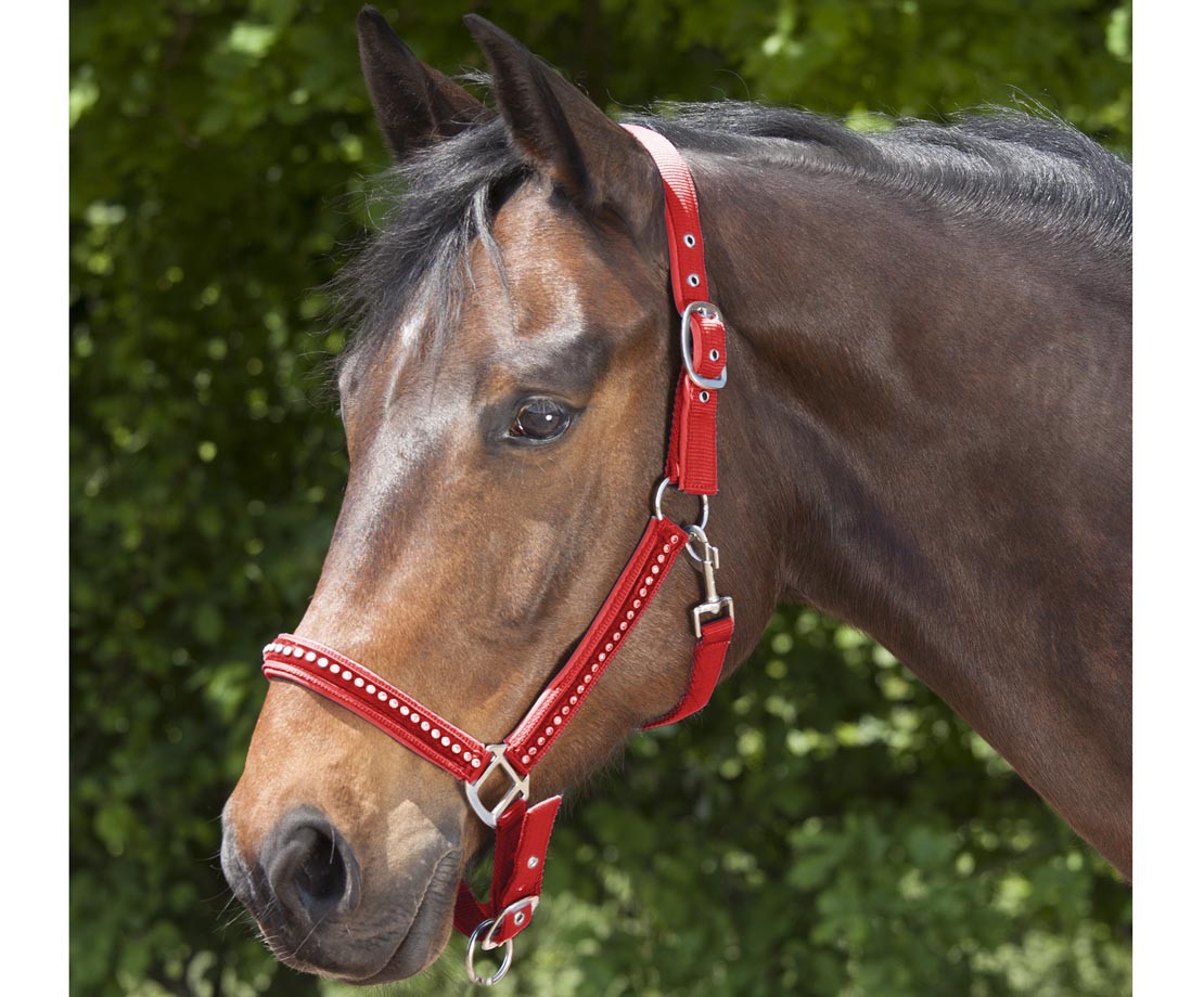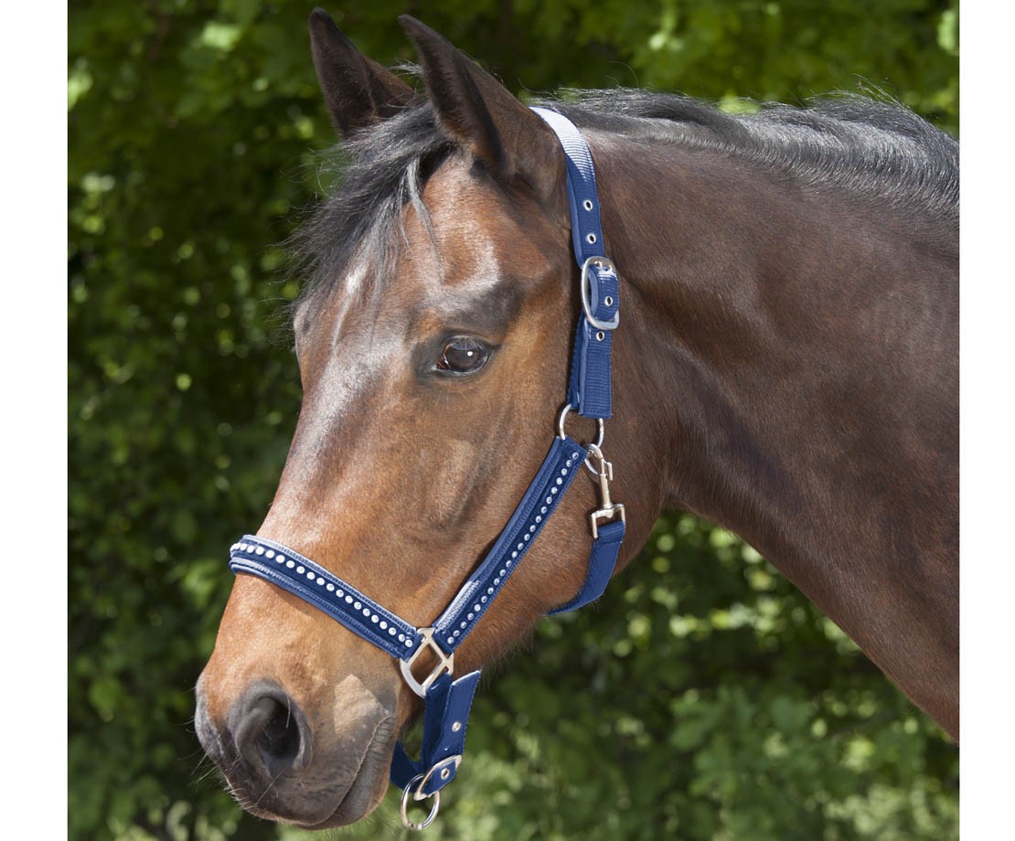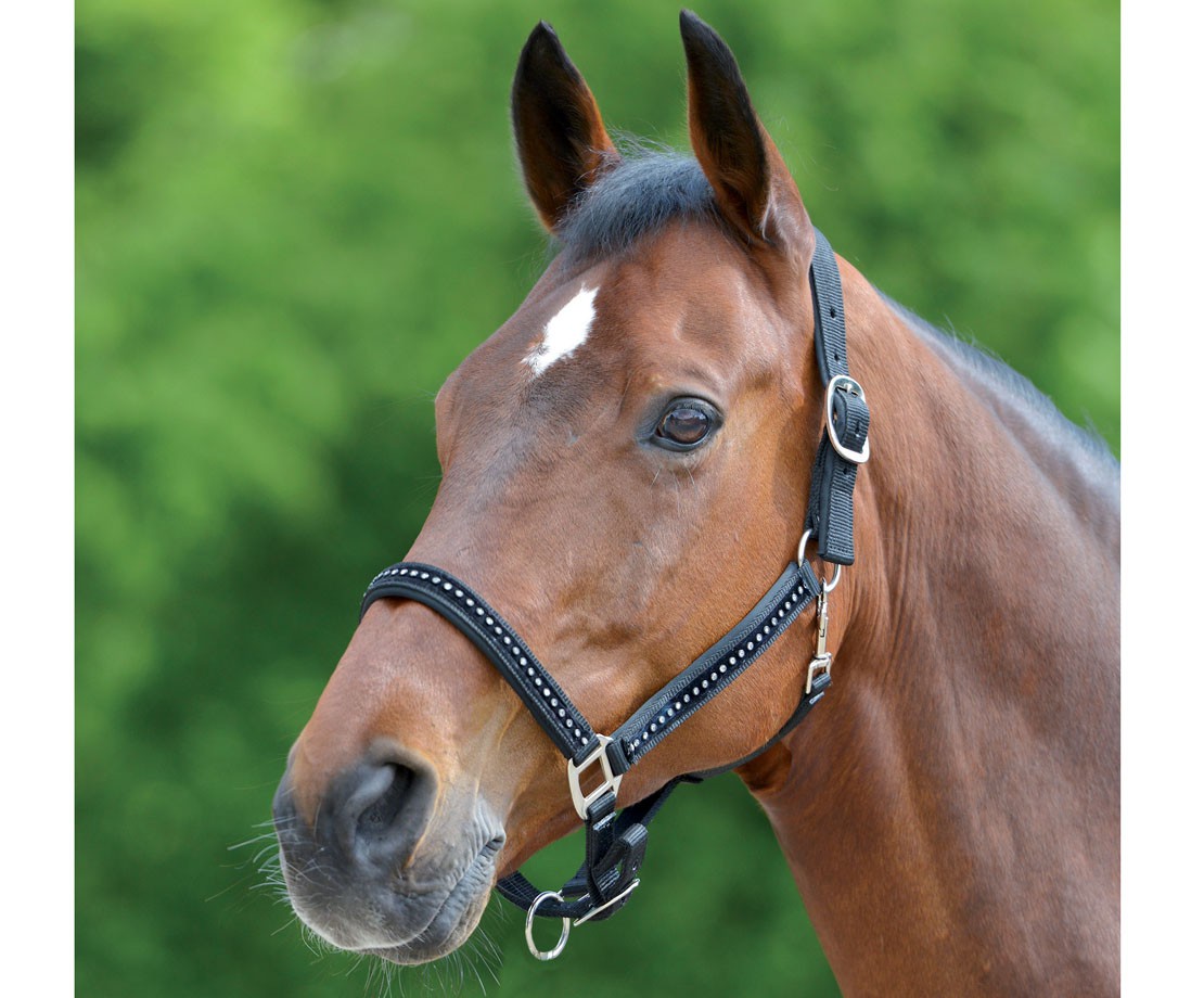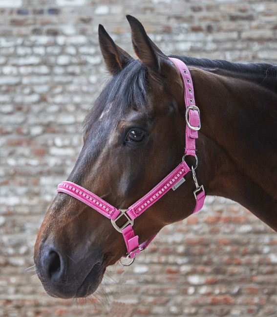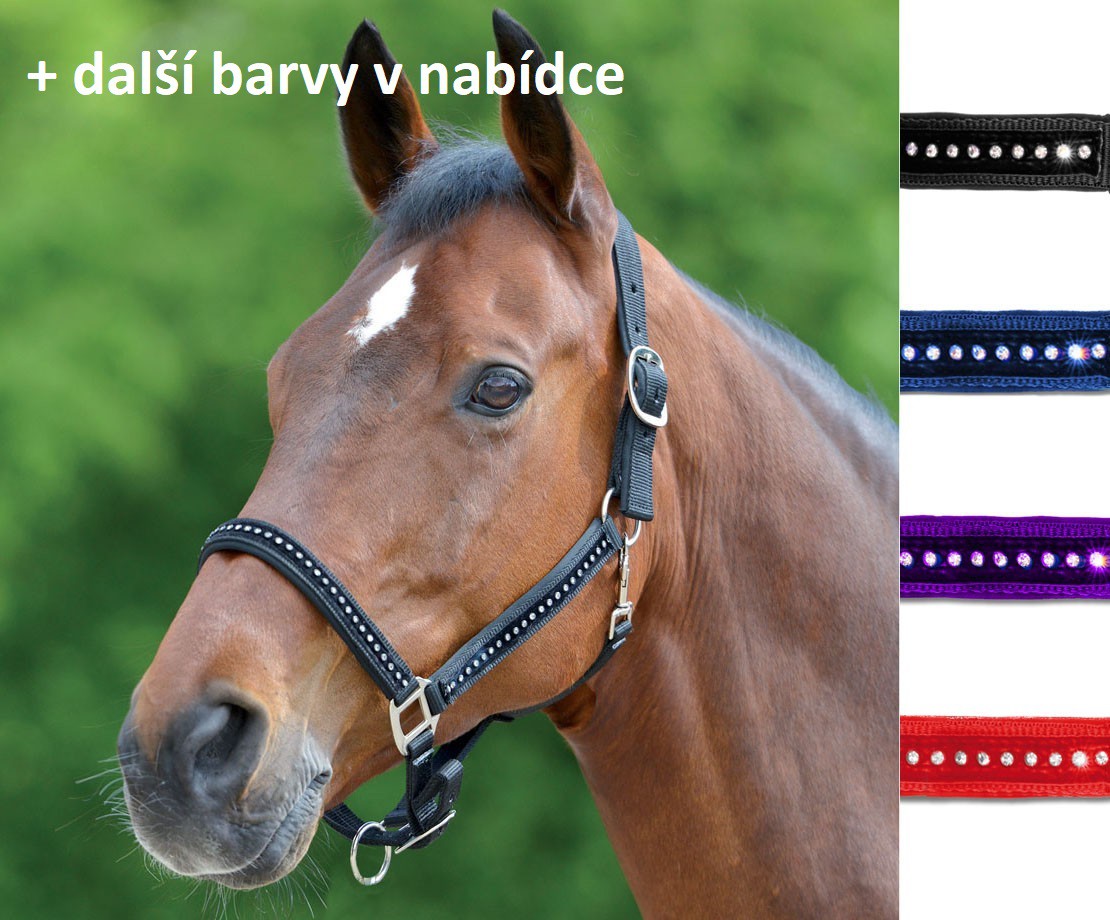 Nylonová ohlávka s kamínky na nánosníku a lícnicích, která ihned upoutá pozornost. Ohlávka je vyrobená z kvalitního nylonu, na nátylníku a nánosníku je podložena měkkým neoprenem, aby koně neotlačila. Jde o kvalitní neopren, pod kterým se koník nezapaří. Nánosník i nátylník jsou stavitelné, ohlávka se zapíná na karabinku. Kamínky v ohlávce drží dobře, na použití ve stáji, na závodech, výstavách ideální. Není určena do výběhu, kde se koník v ohlávce válí a zlikvidujje ji v blátě.
