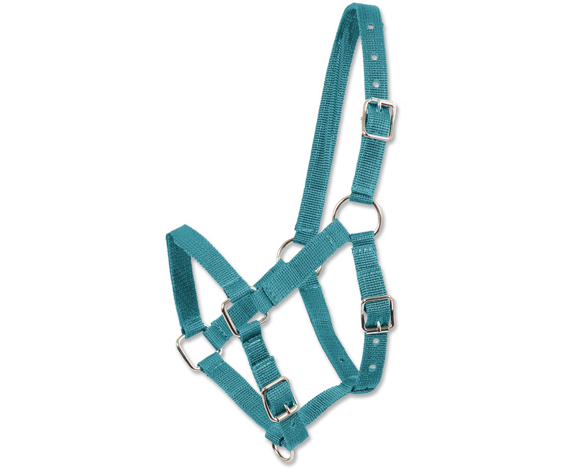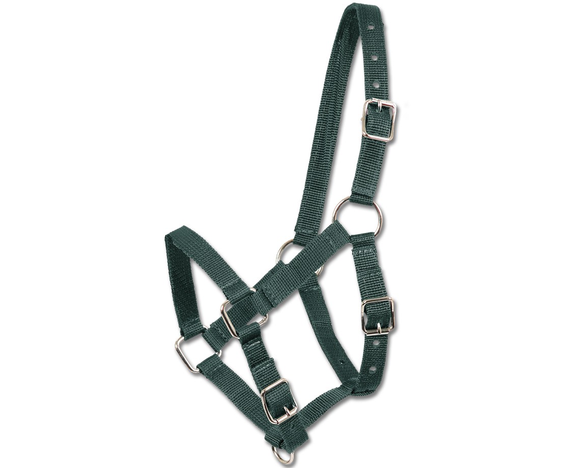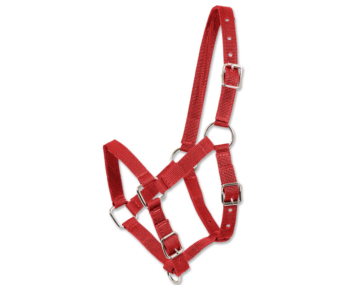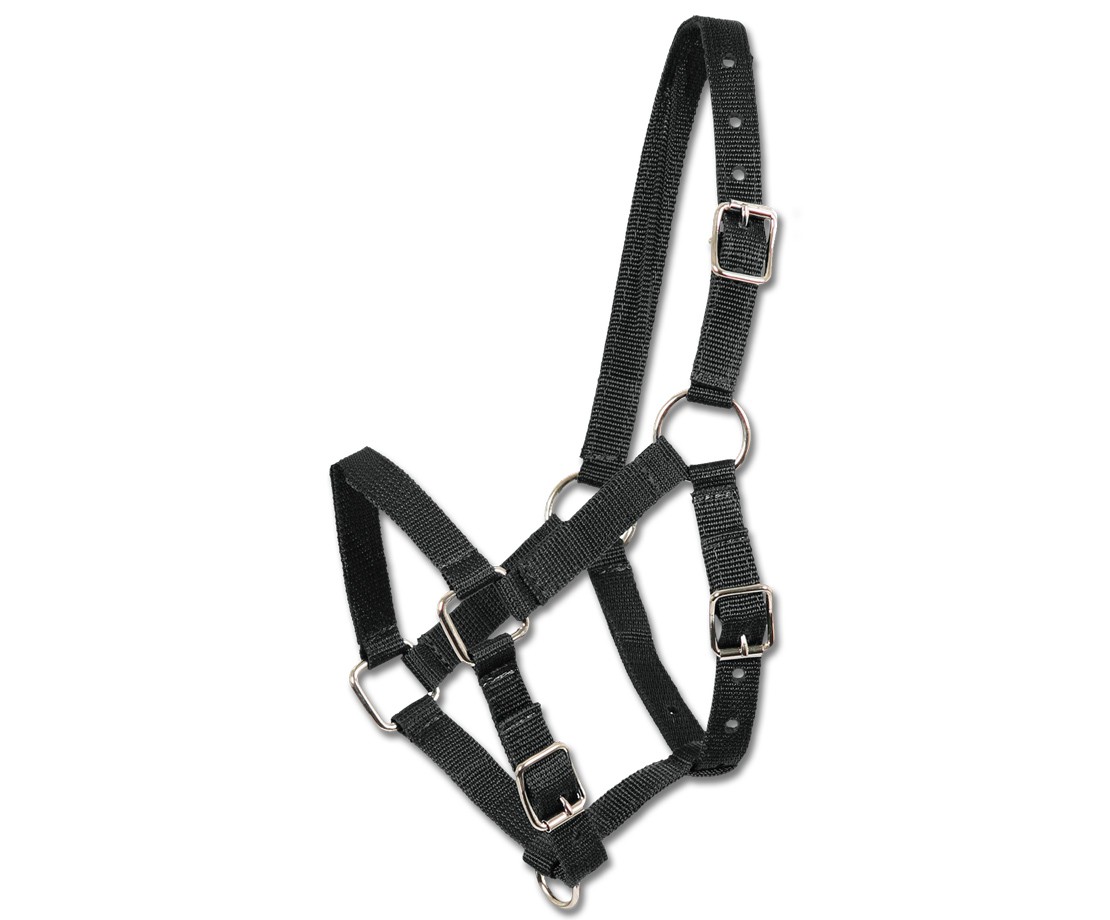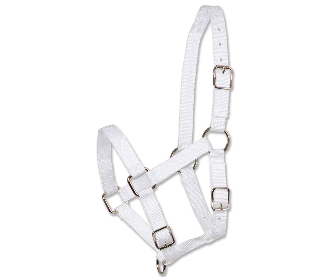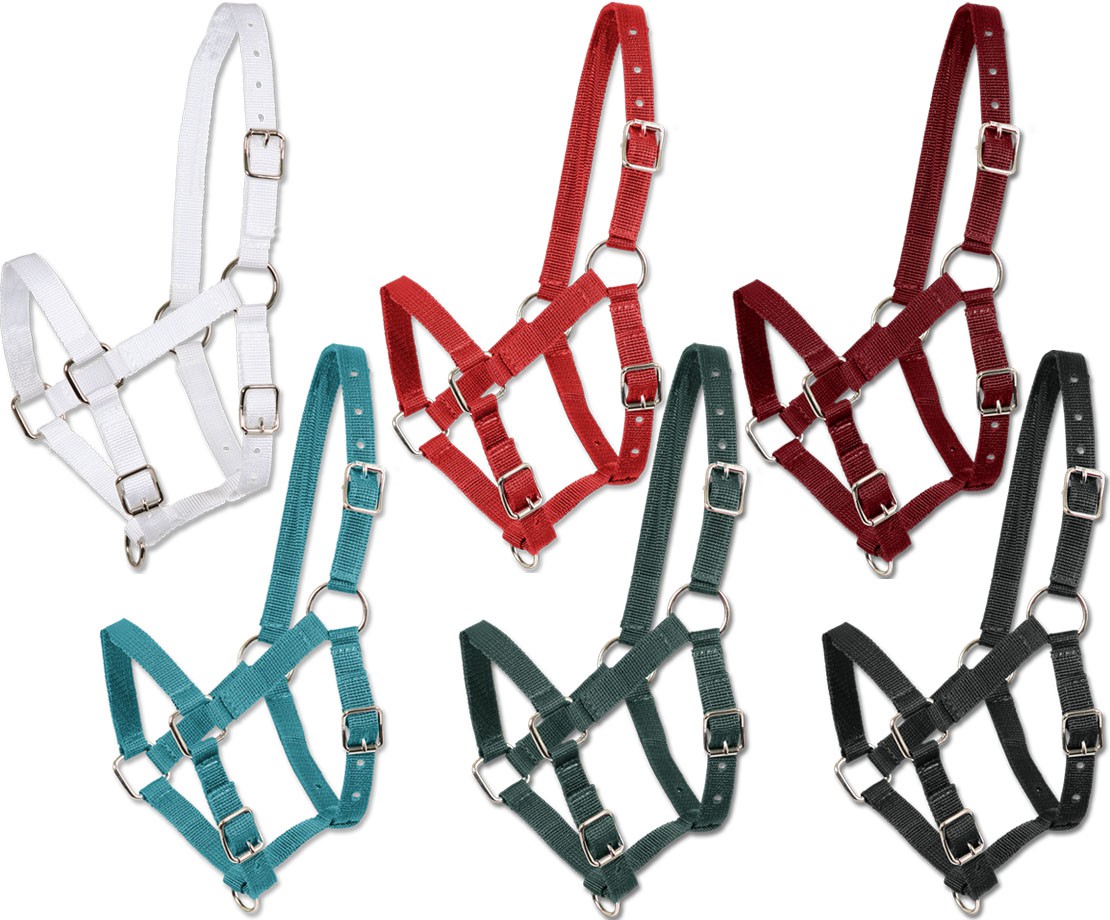 Nylonová hříběcí ohlávka s nastavitelným podhrdelníkem a nánosníkem. Ohlávka tak nějakou dobu vydrží růst spolu s hříbětem.