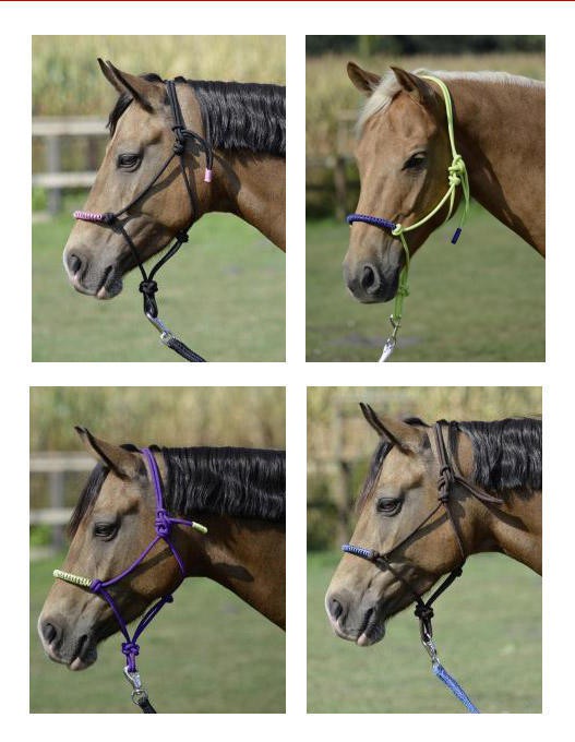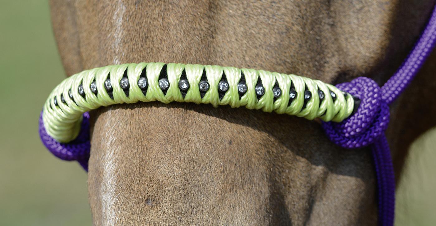 Provazová ohlávka pro práci ze země s uzly na tlakových bodech hlavy koně.
