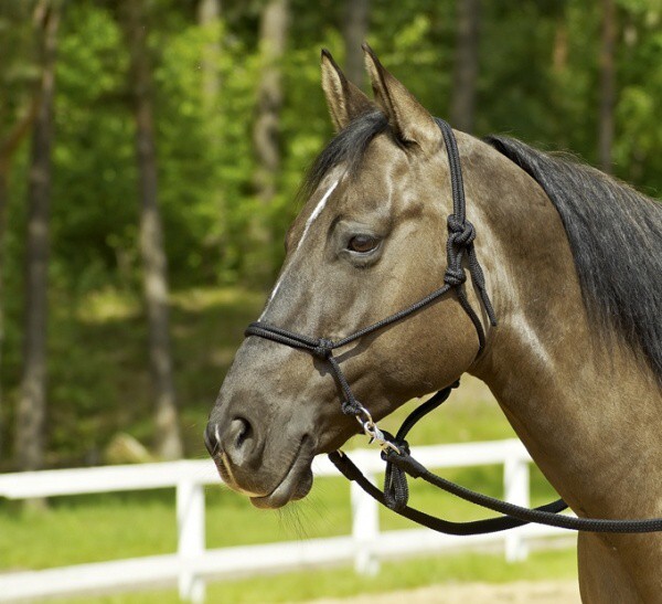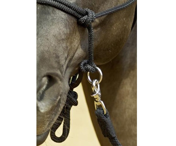 Provazová jezdecká ohlávka s nerez kroužky pro připnutí otěží. Vyrobena z 8 mm silného nylonového provazu.