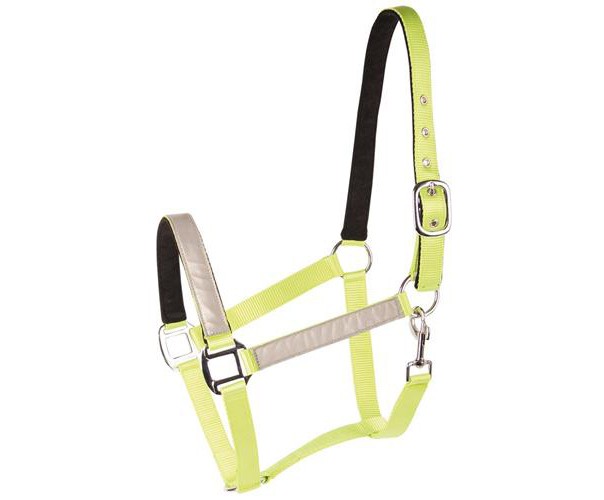 Ohlávka ve žluté reflexní barvě. Po stranách a nánosníku našitý materiál, který ještě více zvyšuje viditelnost ve tmě. 1x stavitelná s karabinou.