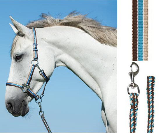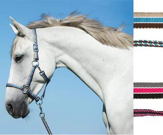 Ohlávkový set se skládá z 2x stavitelné nylonové ohlávky a splétaného nylonového vodítka.