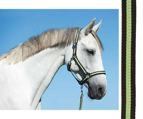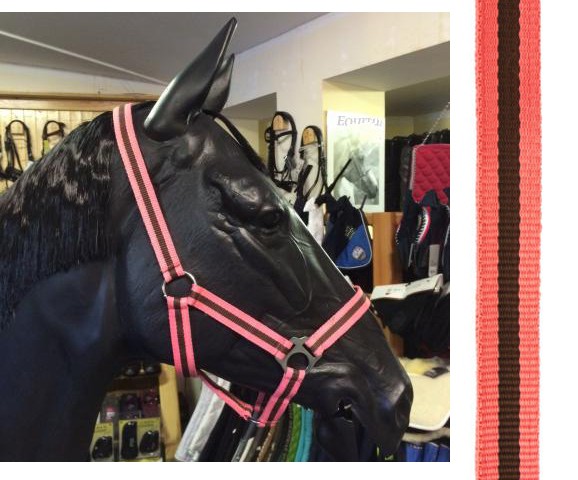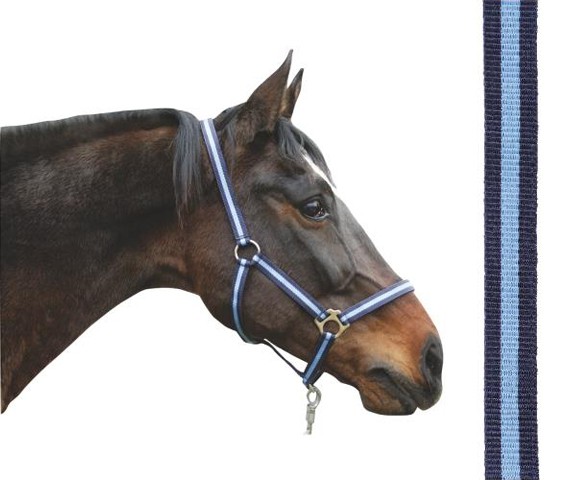 Cenově výhodná nylonová ohlávka s jednoduchou nastavitelností s nerezovým kováním.