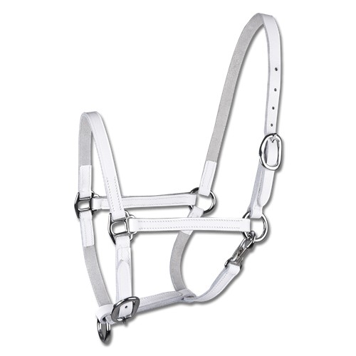 Kožená bílá hříběcí ohlávka od těch nejmenších velikostí.