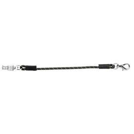Elastický vazák je vhodný jak do stáje tak na přepravu. Na jedné straně má robustní bull karabinu, na druhé straně je panik karabina. Vazák je v černé barvě se žlutými lehce reflexními proužky. Délka vazáku 55 cm bez karabin, včetně karabin 75 cm.