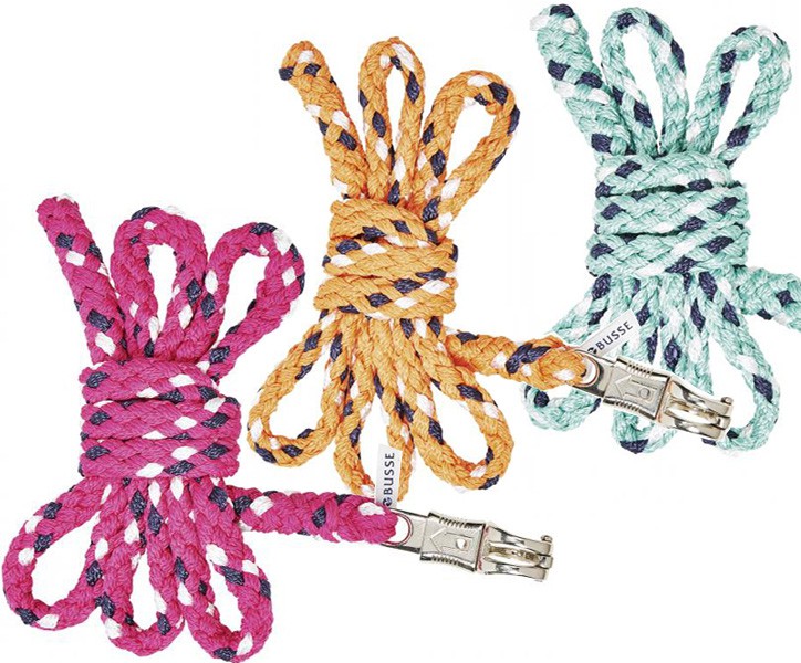 Pevné splétané vodítko z polypropylenu s chromovanou panik karabinou v jasných barevných variacích.