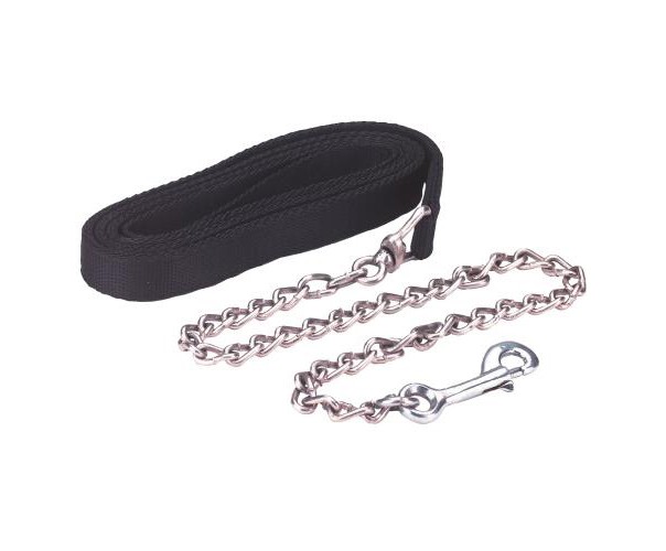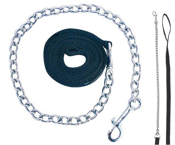 Silné a velmi odolné vodítko v kombinaci černého nylonu a řetězu o celkové délce 2,5 m s otočnou karabinou.