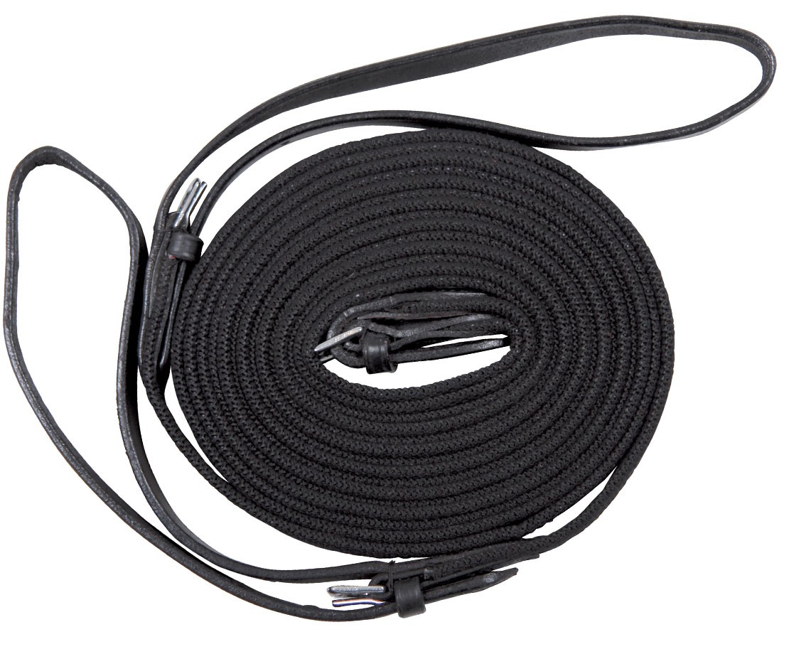 Bavlněné průvlečné otěže s koženým zapínáním na každé otěži zvlášť. Průvlečky se tak dají zapnout nejen na střed podbřišníku, ale také po stranách nebo připnout k sedlu.