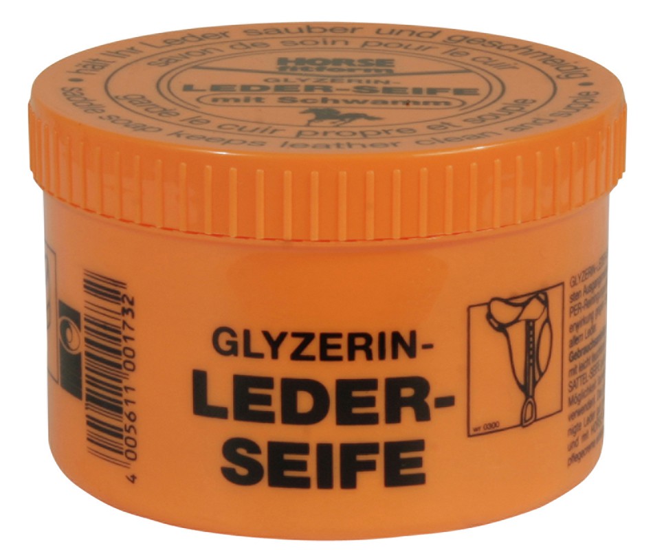 Čistící glycerinové mýdlo na kůži. Mýdlo na kůži je vyrobeno z přírodních materiálů. Mýdlo zajišťuje důkladné vyčištění všech kožených výrobků. Jeho dlouhodobý účinek pomáhá chránit kůži před vysušením a zpuchřením. Použití: otřete výrobek houbou navlhčenou ve vlažné vodě a mýdle, nechte uschnout a pak výrobek ošetřete krémem na kožené výrobky. Houbička uvnitř balení.