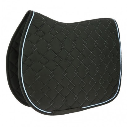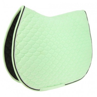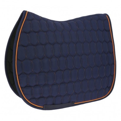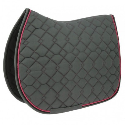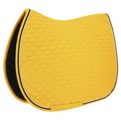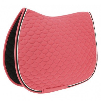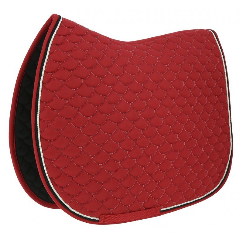 Veselá podsedlová dečka v jasných barvách zdobená dvojitou kroucenou šňůrou.