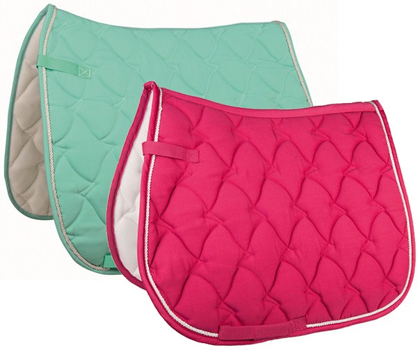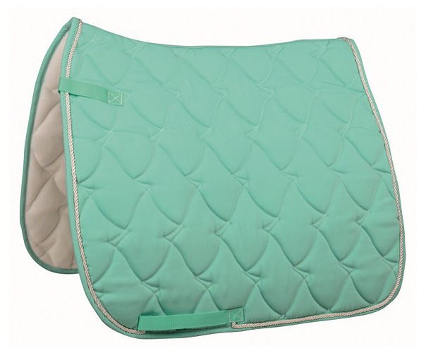 Zajímavě prošívaná univerzální podsedlová dečka s lemem v barvě dečky a kontrastní stříbrnou paspulkou.
