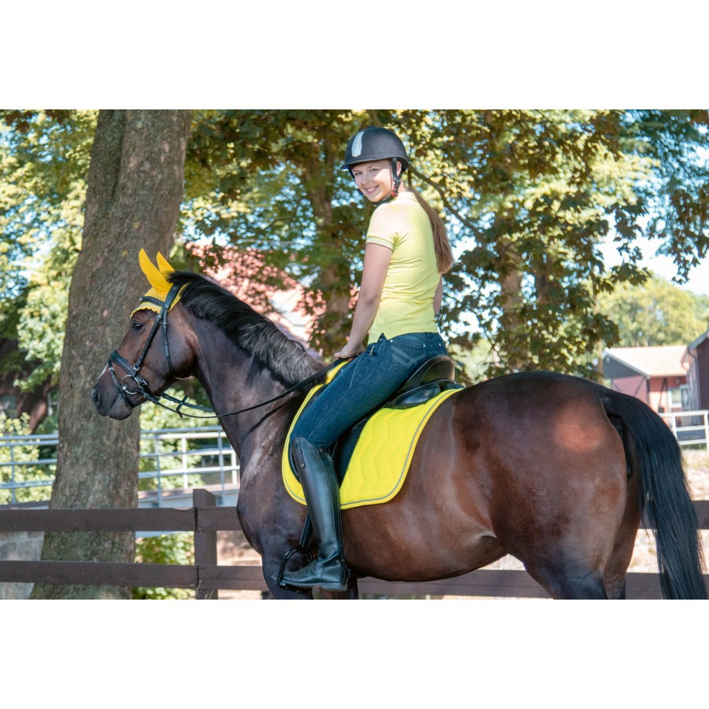 Zajímavě prošívaná univerzální podsedlová dečka s lemem v barvě dečky a kontrastní stříbrnou paspulkou. Úchytky na sedlo jsou opatřeny suchým zipem. Dečka je tvarem uzpůsobena pro skoková, univerzální i drezurní sedla. Vypadá atraktivně. Dečka hodně dobře schne. Materiál: 100% polyester nabízí snadnou údržbu.