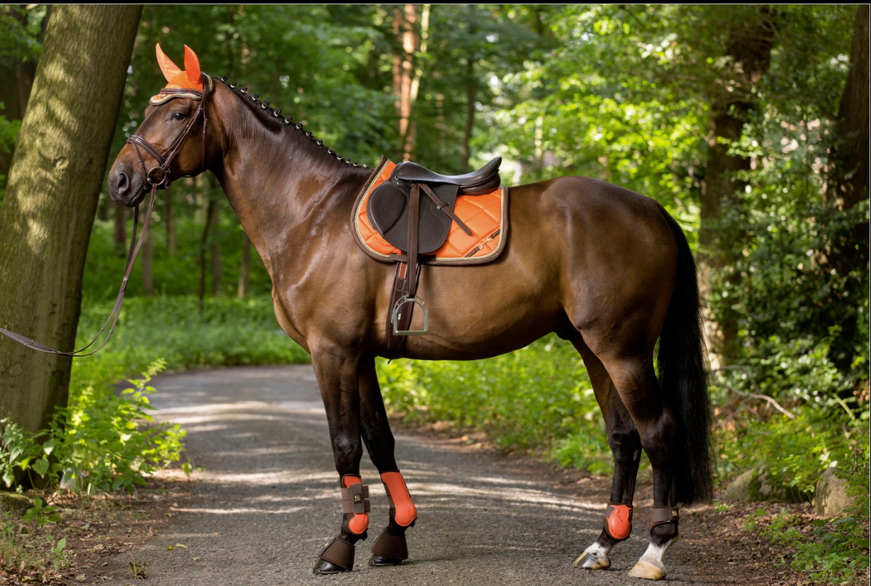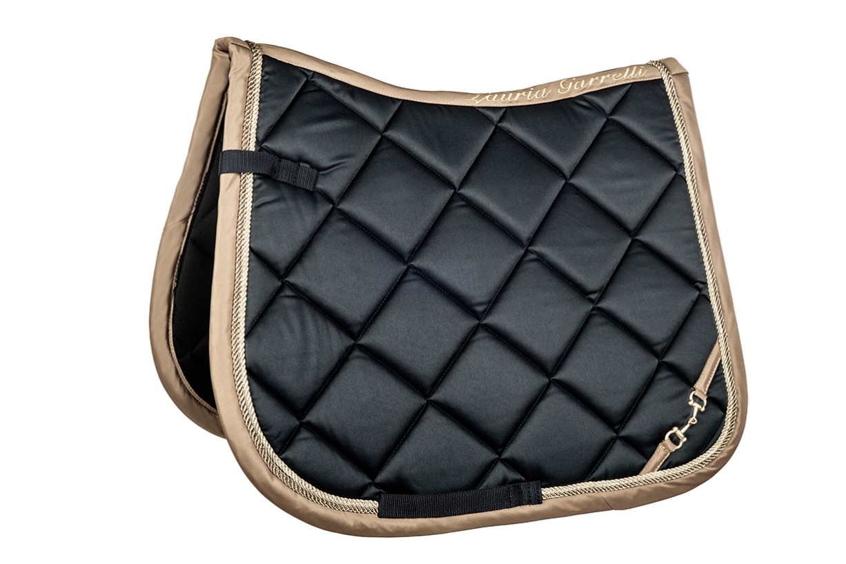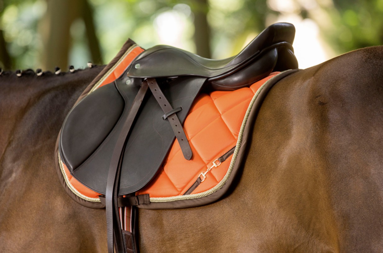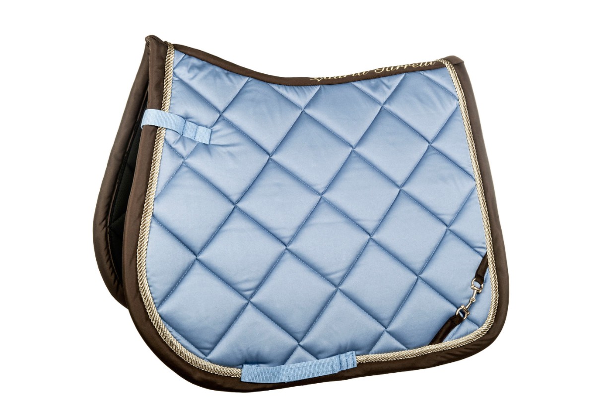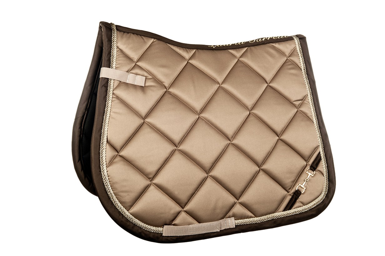 Podsedlová dečka s netradičním proševem, logem v provedení udidla a měkkou výstelkou.