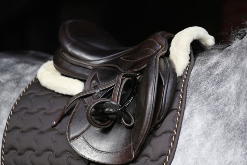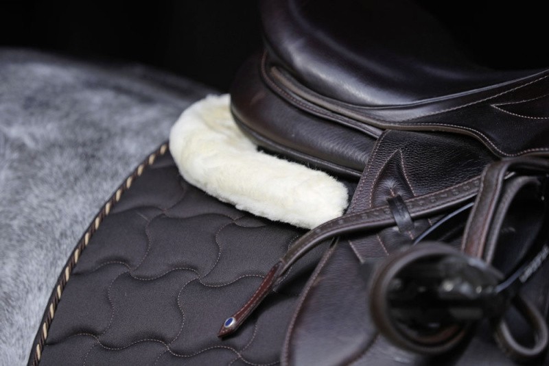 Tlumící dečka pod sedlo se syntetickým beránkem pomáhá rozkládat tlak na hřbet koně a může vyrovnat drobné nedokonalosti sedla.