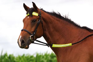 Sada 3kusů návléku z žluté reflexní tkaniny. Obsahuje: 1x 30cm návlek na čelenku uzdečky a2x 30cm návlek na otěže. Vše zapínání na suchý zip.