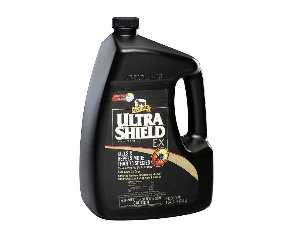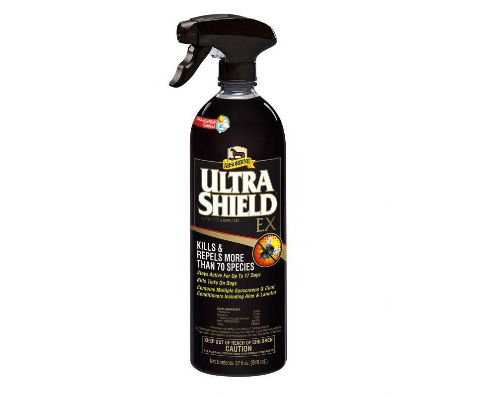 Špičkový americký repelent na českém trhu! Jedná se o sprej s obsahem pyretroidů (permethrin, pyrethriny + technický piperonyl butoxid), jejichž účinek je dle výrobce prodloužen na až 17 dní 24/7. Opravdu účinný repelent s dlouhotrvajícím účinkem. Hubí a odpuzuje přes 70 druhů hmyzu a klíšťata, ktará mohou přenášet limskou boreliózu. Obsahuje účinné insekticidní a repelentní látky, jejichž původ je odvozen z látek obsažených v květech kopretin. Repelentní účinek vydrží aktivní až 17 dnů! To je nejdéle ze všech repelentů prodávaných na českém trhu. Obsahuje řadu ochranných krémů a kondicionérů včetně aloe a lanolinu. Je odolný vůči povětrnostním vlivům. V USA se jedná o jeden z nejoblíbenějších repelentů s prodlouženým účinkem, silnou konkurenci jiného oblíbeného repelentu s až 14ti denní účinností. Používá se na koně, poníky a psy. UltraShield® EX Insecticide & Repellent se nevypotí, je voděodolný, nemastný a jeho prodloužený účinek, běžně zajišťovaný tzv. slunečními krémy pod různými obchodními názvy, je zde posílen použitím rovnou dvou takových. Obsahuje také výtažky z aloe a lanolinu.