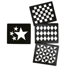 Šablony z umělé hmoty ke zkrášlení koně. Šablonu přiložíte na srst a pomocí mokré houbičky docílíte požadovaného vzoru.