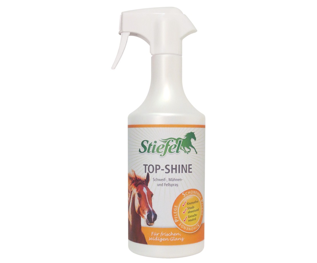 Kvalitní péče o srst, hřívu a ocas Vašeho koně. Lesk s rozprašovačem Steifel TOP-SHINE dodává srsti hedvábný lesk a usnadňuje čištění. Díky neviditelnému ochrannému filmu odpuzuje prach a špínu a hříva i ocas zůstávají hedvábně lesklé.