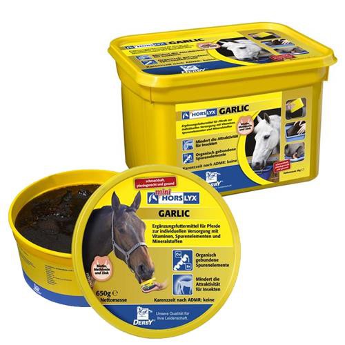 Krmivo ve formě lizu HORSLYX Garlic nabízí vyrovnaný poměr vitamínů, minerálních látek a stopových prvků pro optimální zdravotní stav koně během celého roku. HORSLYX je vysoce hodnotný doplněk stravy, který je navržen k vyrovnávání nutričních nedostatků krmiva a pomáhá snižovat stres zvířat. Je vhodný pro všechna plemena koní a poníků a oslů, včetně koní s laminitidou, pokud je předkládán správně. Více o laminitidě na www.horslyx.com Každý HORSLYX obsahuje biotin, methionin a zinek pro zdravou srst a kopyta. HORSLYX GARLIC obsahuje navíc přírodní česnekové granule fungující jako odpuzovač hmyzu.