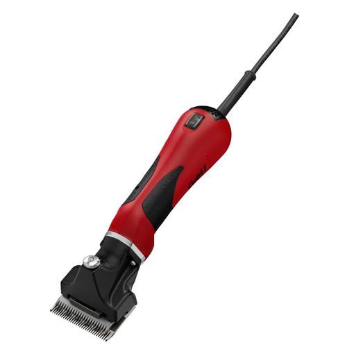 Stříhací strojek pro koně s napájením ze sítě 230 V a 90 W efektivního příkonu. Díky konstrukci převodovky má strojek velmi tichý chod, minimální vibrace a má široké využití.